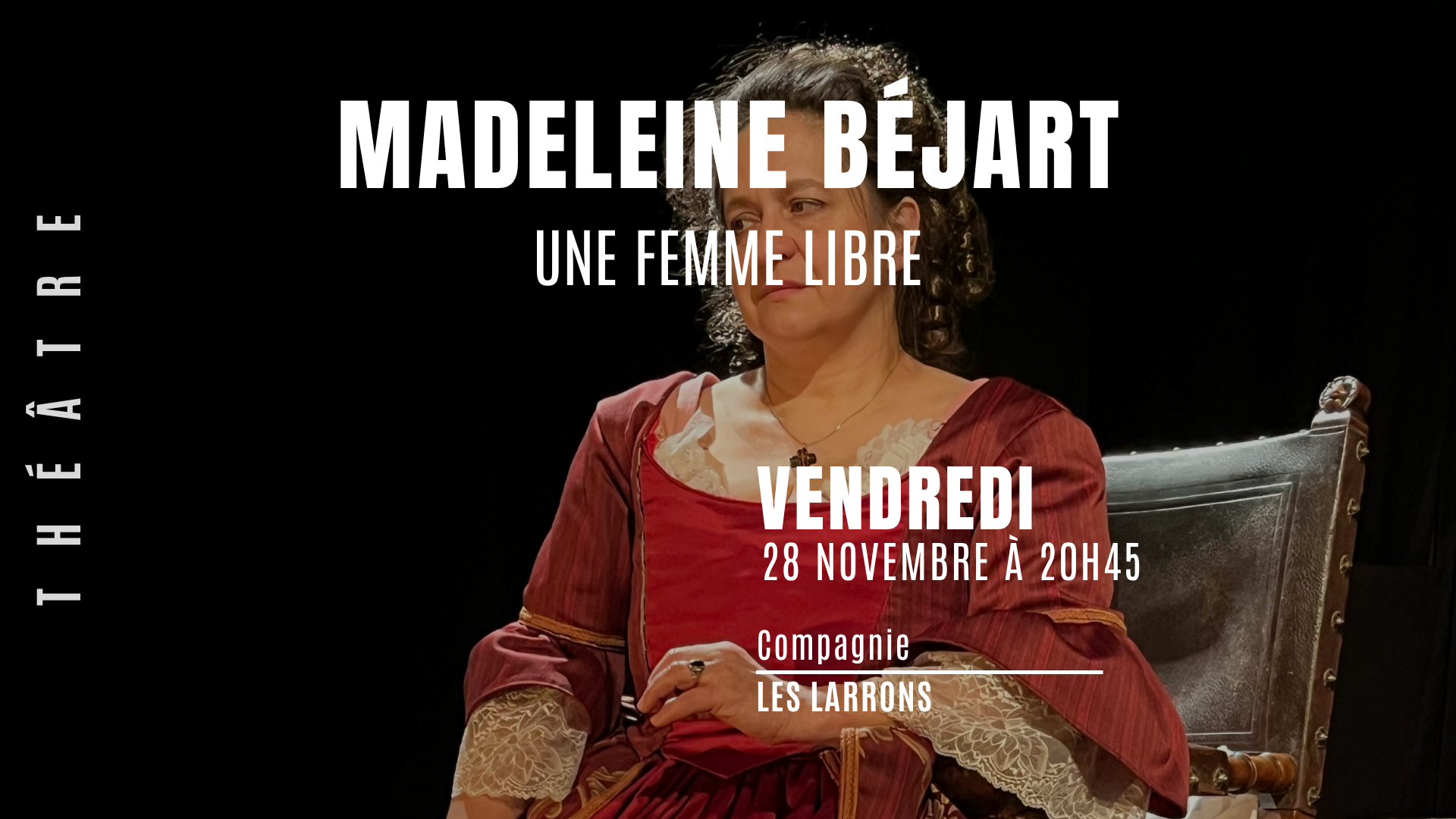 Sans Madeleine Béjart, Jean-Baptiste Poquelin ne serait jamais devenu Molière. Elle a été sa muse, sa complice, à une époque où les femmes n’avaient le droit qu’à l’ombre. C’est Madeleine Béjart qui a initié Molière au théâtre. C’est elle qui l’a formé en tant qu’acteur et l’a initié à l’écriture théâtrale. Madeleine Béjart et Molière forment un couple extraordinaire dans l’histoire du théâtre français. Durant trente année de leur vie, ils ont inventé une nouvelle forme théâtrale : la comédie de mœurs, une aventure extraordinaire qui a mené à la création de la Comédie Française. Considérée comme la plus grande tragédienne de son temps, Madeleine Béjart bouscule toutes les conventions. Elle ne se marie pas, et ne dépend d’aucun homme pour exister.