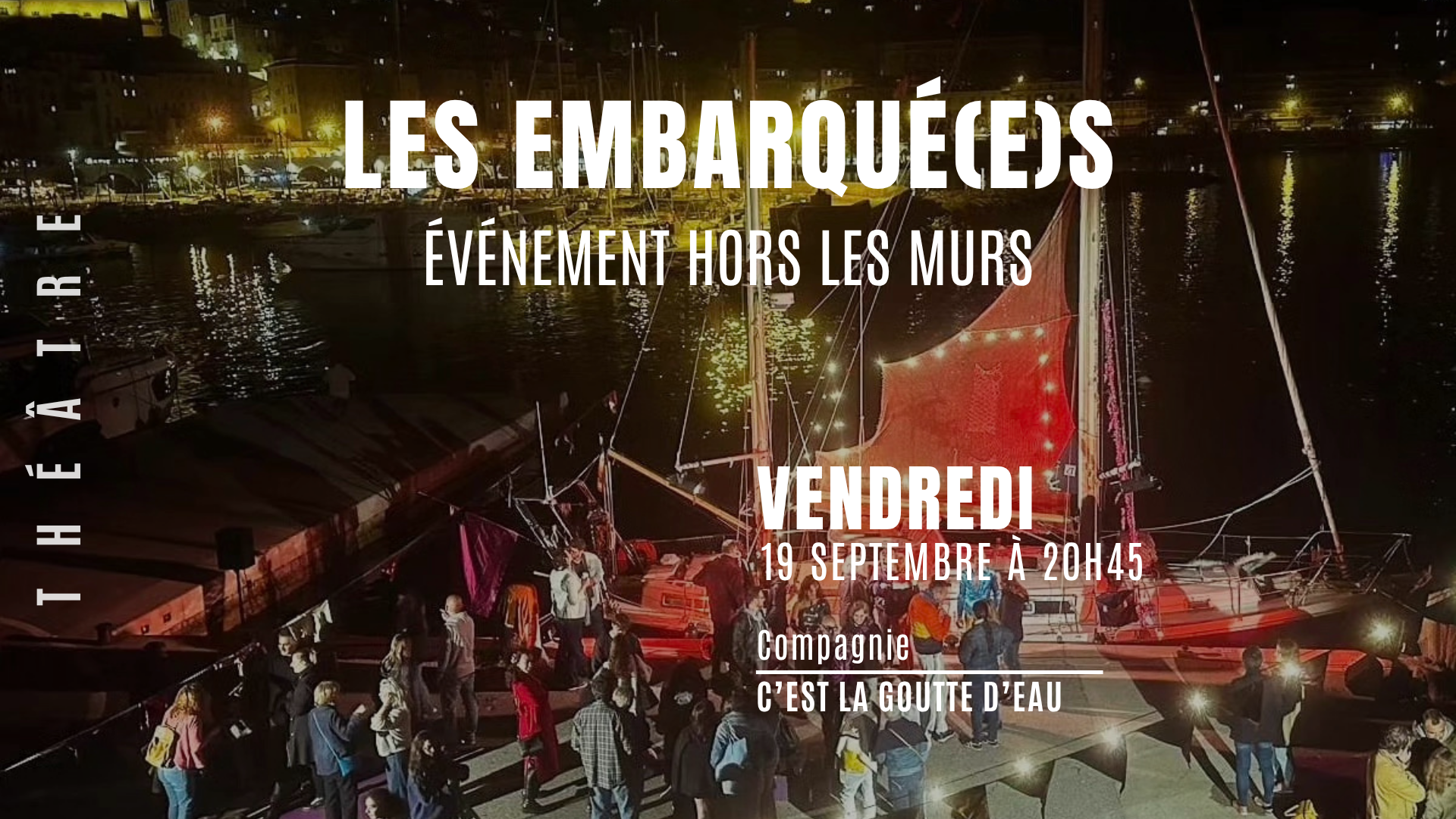 Déroulé du spectacle : le spectacle a lieu sur le voilier-théâtre, le public est disposé à quai, places assises (attention places très limitées, réservation obligatoire)